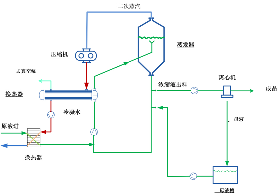 三、機械蒸汽再壓縮只要在蒸發(fā)啟動(dòng)時(shí)提供一定的能量使系統產(chǎn)生二次蒸汽,然后即可不再外加蒸汽而使蒸發(fā)連續進(jìn)行